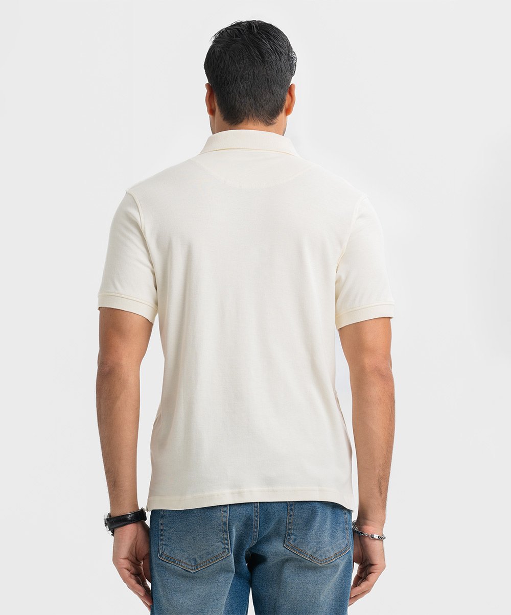 Men’s short-sleeved polo in interlock knit fabric. Classic collar with straight hem.